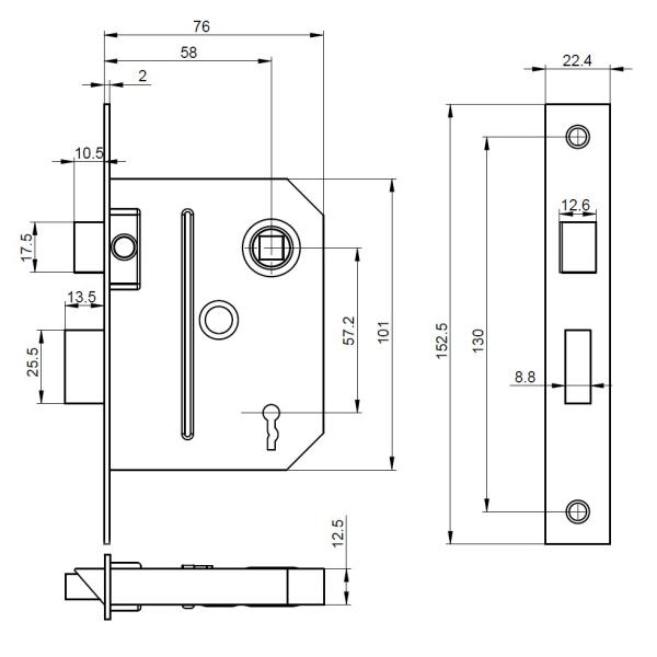 Commercial Mortice Door Lock Easily Reversible Latch Bolt For Timber Doors Polished Brass Finish Images |